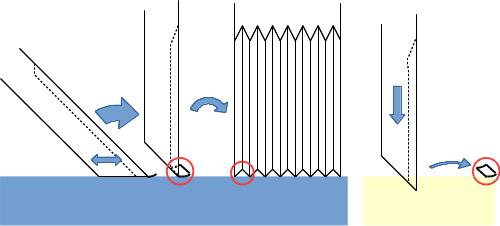 Wenn man das Zahneisen schleift entsteht ein Grat. Der Grat verläuft entlang der Zahnränder, also in den Zwischenräumen.