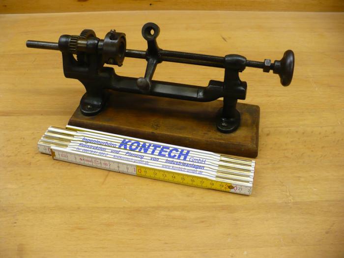 Bisher gehe ich davon aus, dass es sich um eine alte Mini-Drechselbank handelt. (Ich kann damit aber auch komplett daneben liegen!)
