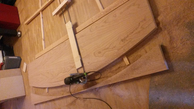 Die Abdeckung oben hat einen Radius von ca. 3 Metern. Rundungen dieser Art mache ich gerne mit der Oberfräse, wie abgebildet.
