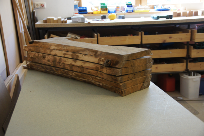Wie üblich aushobeln und abrichten und kontrollieren, ob die Natur auch das produziert hat, was der Holzwerker sich wünscht, sprich schauen, ob die passenden Stücke für die Rahmen auch herzustellen sind. Hat alles gepasst.
