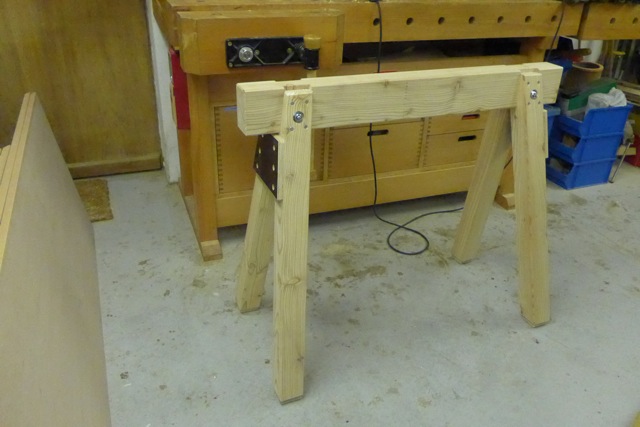 Etwas steht allerdings noch aus, die Behandlung mit Leinöl und ein Opferbrett auf jedem der Böcke, zu groß ist die Gefahr beim Besäumen mit der HKS in den Querbalken zu sägen,
