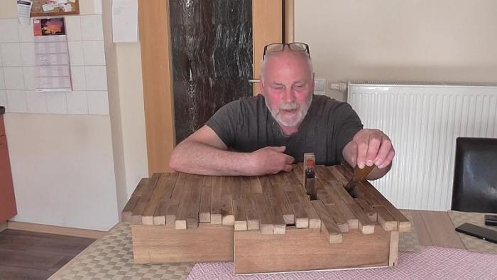 So habe ich es dann doch noch geschafft, die Eichestäbchen hatte ich noch liegen und brauchte sie nur auf Länge sägen.