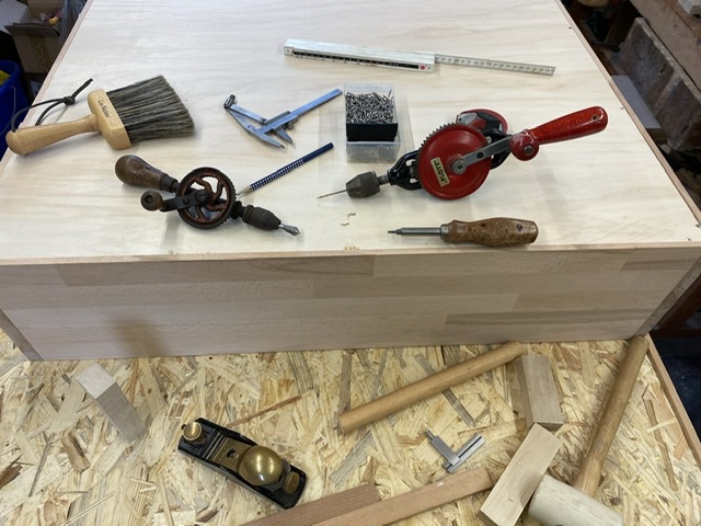 Schon lange wollte ich das meine Sägen nicht mehr einfach nur rumliegen. Gebaut ist es aus Baumarkt Leimholz und Bucheleisten.