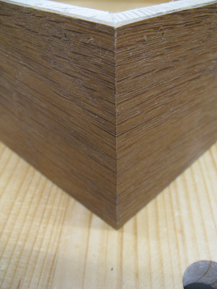 45-Grad-Verbindungen habe ich bislang immer abgelehnt, weil ich sie einfach nie genau hinbekomme. Da sind für mich sogar die Schwalbenschwanzzinken schöner umzusetzen.