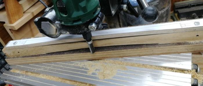 Die Sägearme sind höher als die Frästiefe, das macht aber nichts, weil der bereits gefräste Teil als Schablone funktioniert.